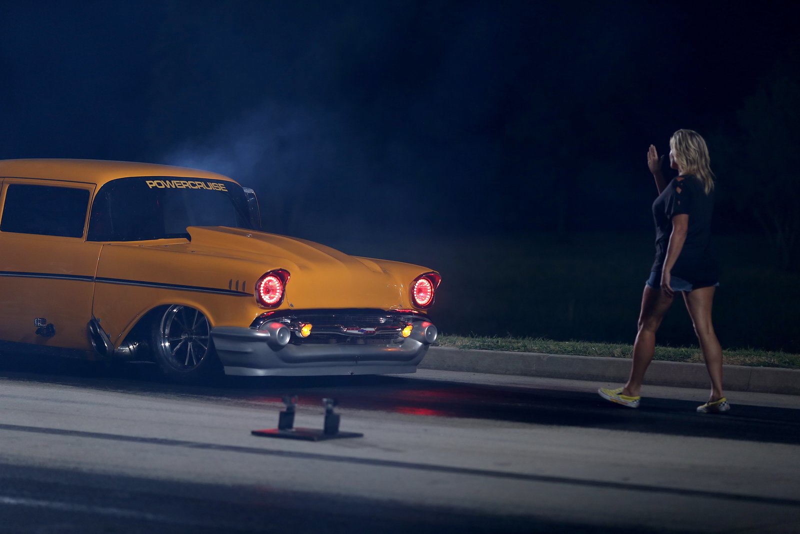 Folge 13Monza performs a burnout before his grudge race against Shane.Bild: © Discovery Communications, LLC