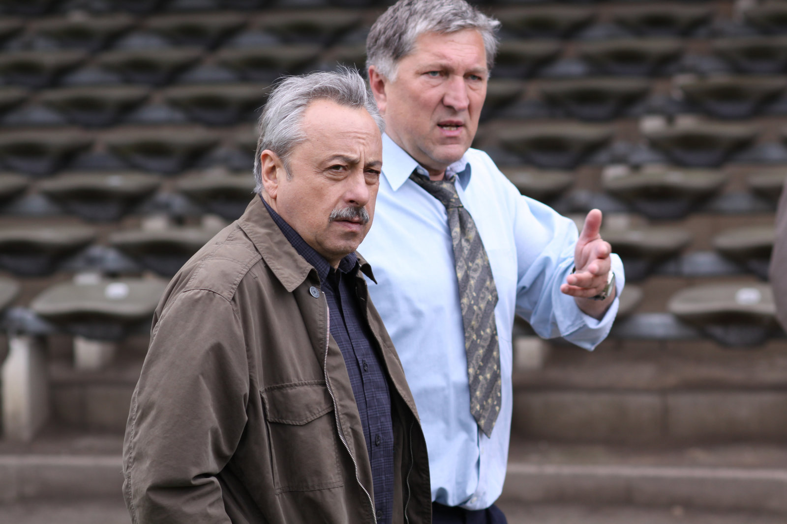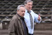 VerräterGiselher Huber (Veit Stübner), Präsident des Fußballvereins, in dem der ermordete Streek gespielt hat, im Gespräch mit Kommissar Stubbe (Wolfgang Stumph).Bild: © ZDF und Manju Sahwney