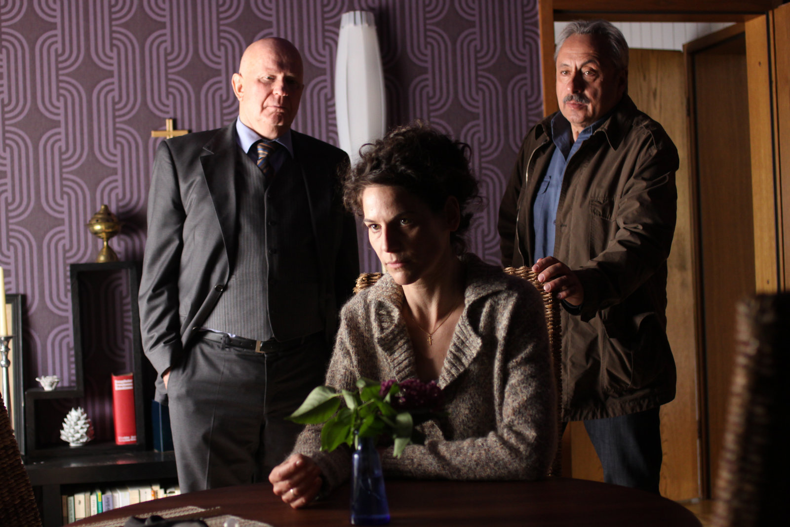 VerräterZimmermann (Lutz Mackensy, l.), Agnes Mohr (Bibiana Beglau, M.) und Stubbe (Wolfgang Stumph, r.).Bild: © ZDF und Manju Sahwney