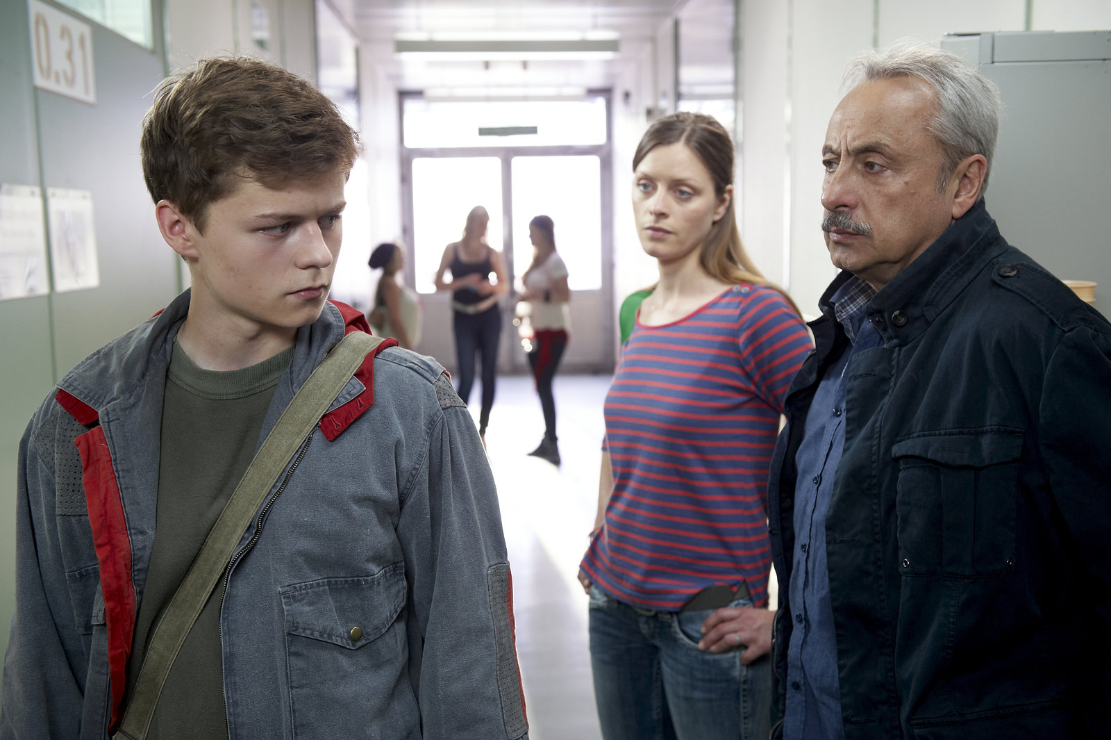 Gefährliches SpielStubbe (Wolfgang Stumph) und die Lehrerin (Alma Leiberg) des toten Mädchens befragen Mirco (Tom Böttcher), einen Mitschüler.Bild: © ZDF und Sandra Hoever