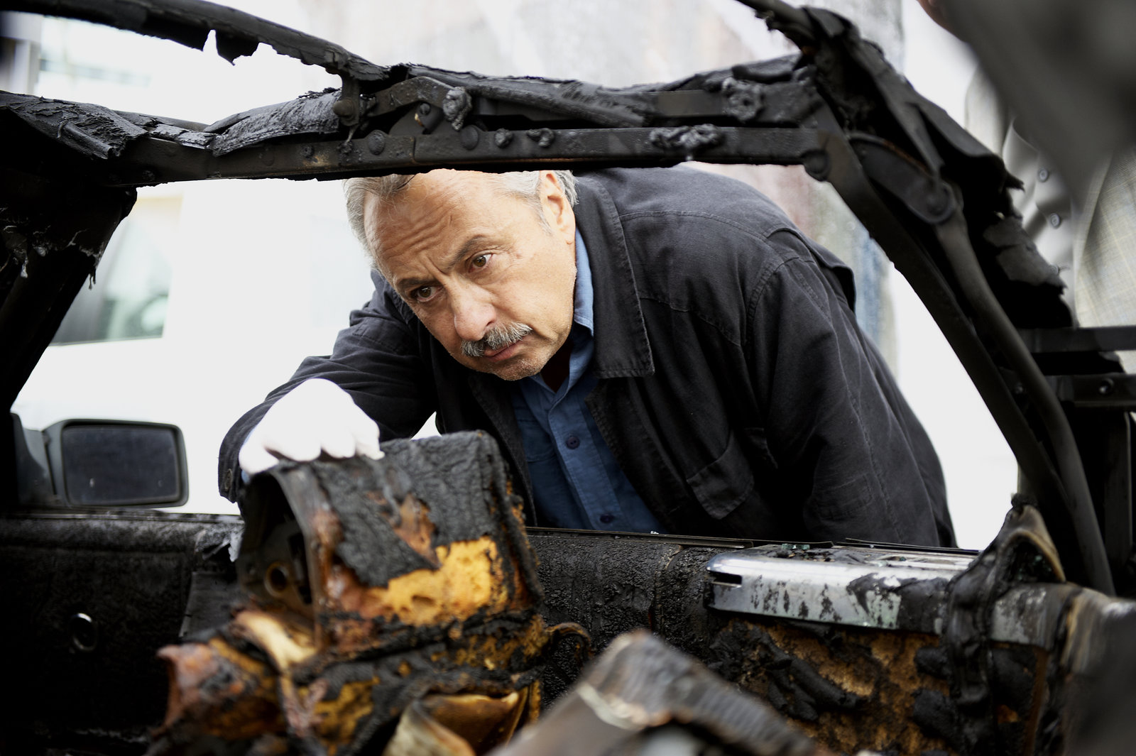 KassensturzStubbe (Wolfgang Stumph) betrachtet interessiert den Tatort.Bild: © ZDF und Sandra Hoever