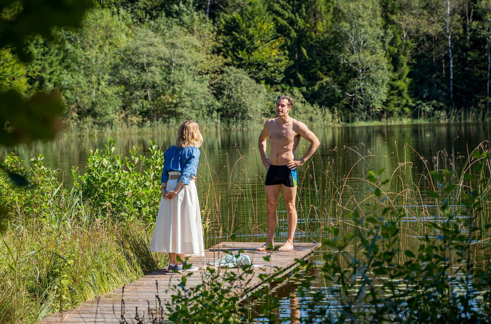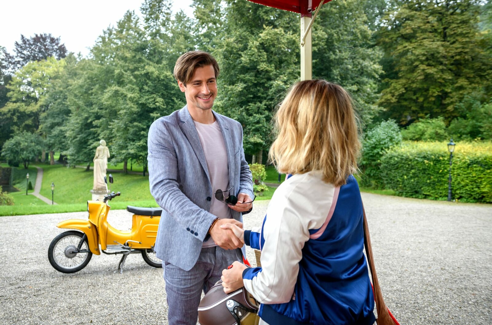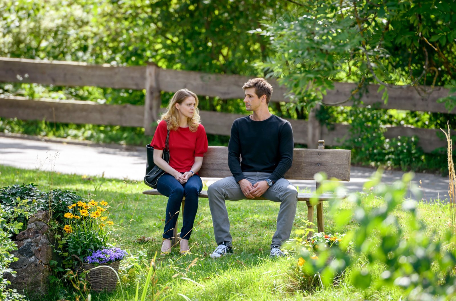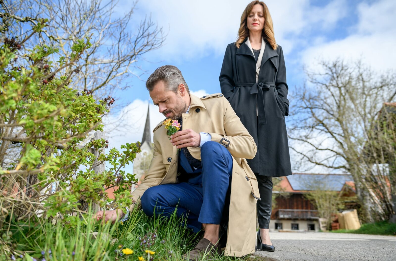 AusgeliefertAriane (Viola Wedekind, r.) ist gerührt, als Erik (Sven Waasner, l.) ihr Blumen pflückt.Bild: © ARD/Christof Arnold