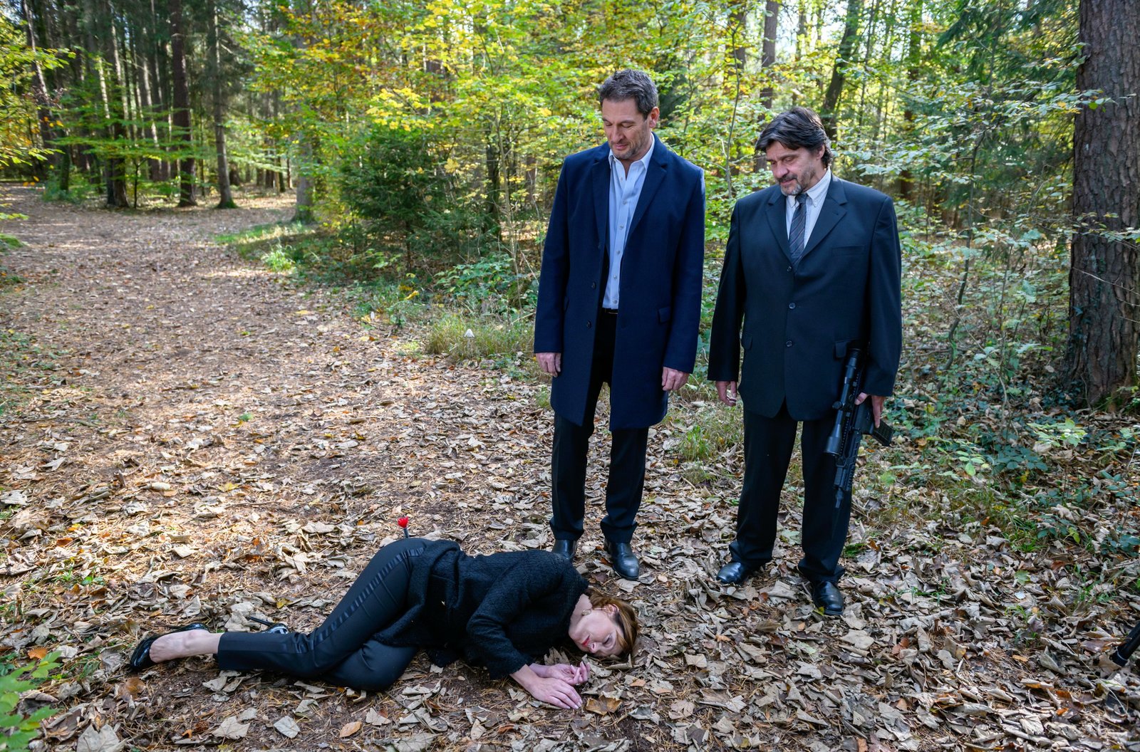 VeränderungenUm sich nicht von Xenia (Elke Winkens, l.) geschlagen zu geben, greift Christoph (Dieter Bach, M.) zu radikalen Maßnahmen (mit Komparse, r.).Bild: © ARD/Christof Arnold