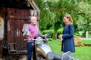 SpritztourLia (Deborah Müller, r.) vertraut sich in ihrem Kummer Alfons (Sepp Schauer, l.) an, der ihr daraufhin sein Motorrad leiht, damit sie bei einer Tour den Kopf freibekommt.Bild: © ARD/Christof Arnold