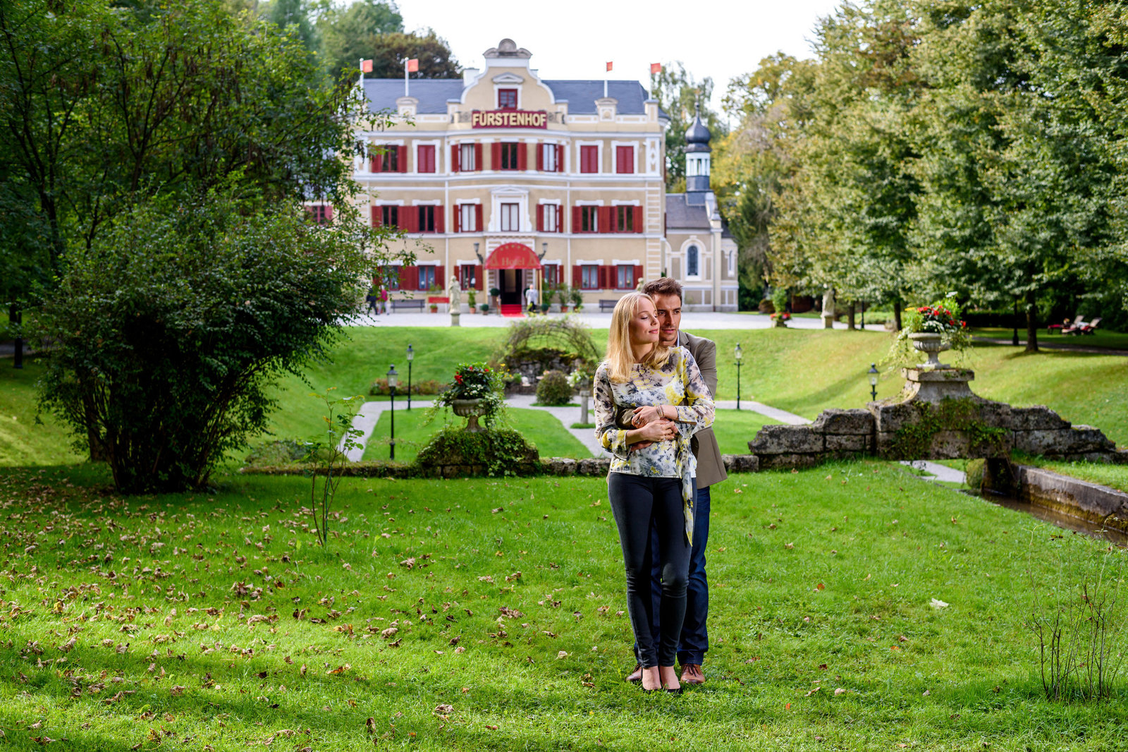 Finanzkrise am "Fürstenhof"Charlotte (Mona Seefried, l.) geht liebevoll auf den besorgten Nils (Florian Stadler, r.) ein.Bild: © ORF