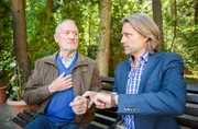 TrennungsschmerzenFabien (Lukas Schmidt, r.) erzählt Michael (Erich Altenkopf, l.), dass er sich in eine etwas ältere Frau verliebt hat. Michael ahnt nicht, wie viel älter als Fabien die Angebetete in Wahrheit ist ...Bild: © ARD/Ines Tausch