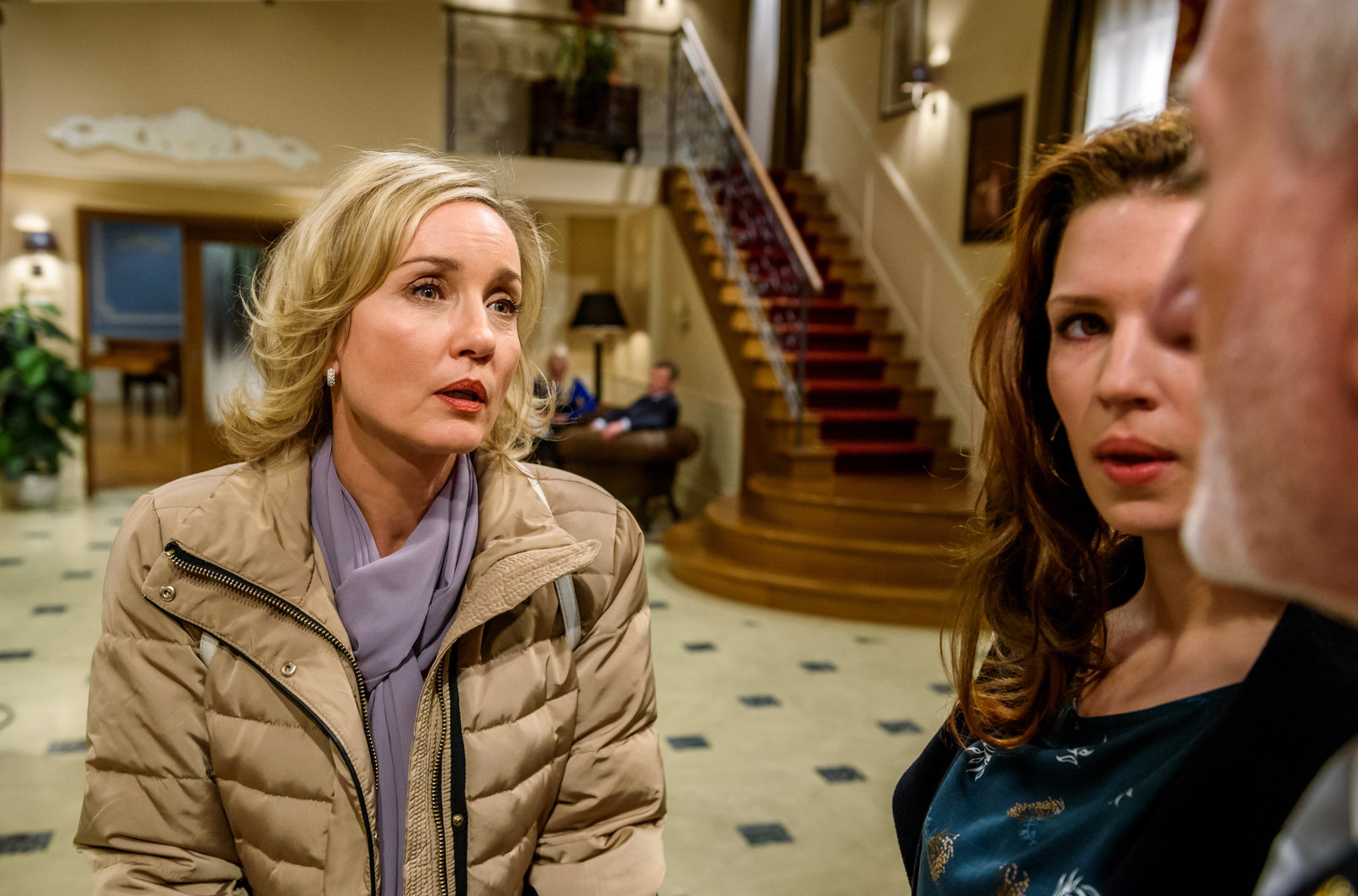 Blitzhochzeit in Vegas?Beatrice (Isabella Hübner, l.) erfährt von Anja (Maria Weidner, M.) und Alfons (Sepp Schauer, r,), dass David erblindet ist.Bild: © ARD/Christof Arnold