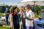 Ehrfurcht vor dem GegnerShirin (Merve Çakır, vorne l.) und Erik (Sven Waasner, vorne M.) wünschen Gerry (Johannes Huth, vorne r.) viel Glück. (mit Komparsen)Bild: © ARD/Jenrick Mielke