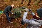 Zauberhafte LiebeserklärungNatascha (Melanie Wiegmann, r.) fotografiert mit dem Handy, wie Michael (Erich Altenkopf, l.) André (Joachim Lätsch, M.) aus dem Käfig befreit.Bild: © ORF