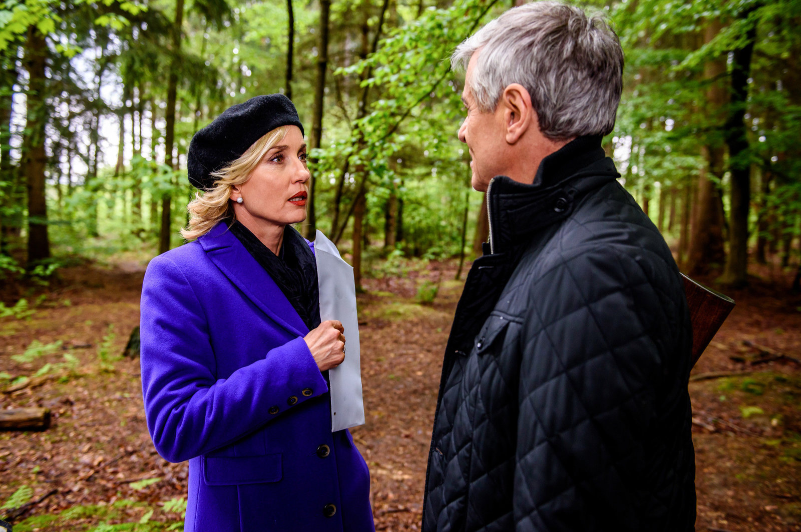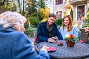 Ein Fall für die VersicherungFriedrich (Dietrich Adam, r.) macht Beatrice (Isabella Hübner, l.) einen Heiratsantrag – der allerdings an eine Bedingung gebunden ist.Bild: © ARD/Christof Arnold