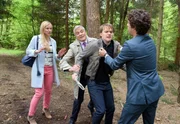 Die FalleSebastian (Kai Albrecht, re.), Luisa (Magdalena Steinlein) und Friedrich (Dietrich Adam, 2.v.li.) gelingt es, Bertram Kesselring (Andreas Bendig, 2.v.re.) aufzuhalten.Bild: © ORF