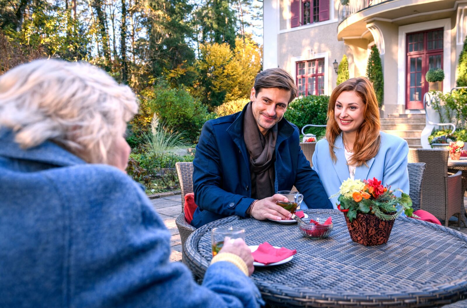 Diffuse ErinnerungenAls Paul (Sandro Kirtzel, M.) stellt seiner Oma Anna (Christiane Blumhoff, l.) Constanze (Sophia Schiller, r.) vor.Bild: © ARD/Christof Arnold