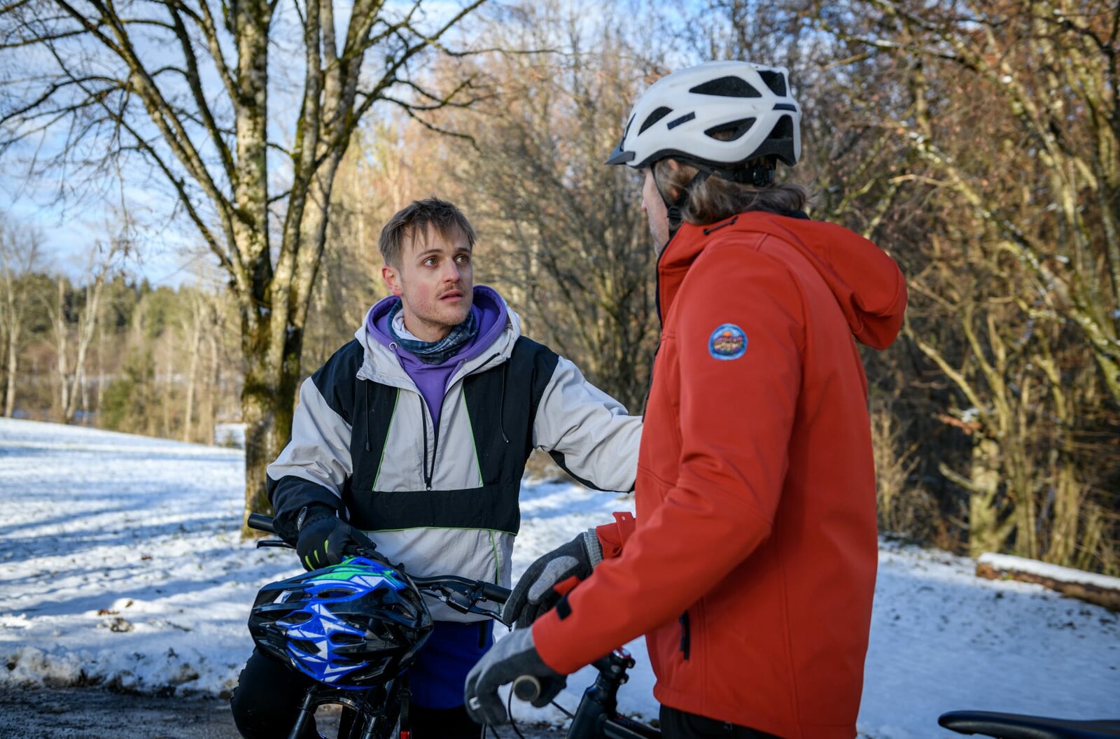 Die BergtourNils (Florian Stadler, l.) verweigert Oskar (Philip Butz, r.) seine Hilfe.Bild: © ARD/Marco Meenen