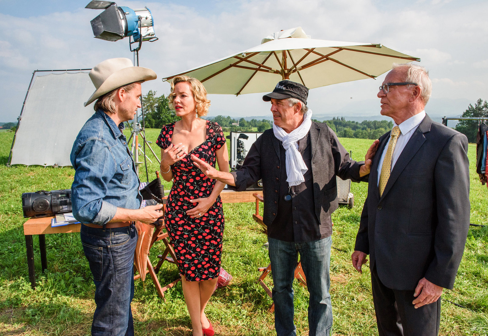 Das Aus für "Luft und Liebe"André (Joachim Lätsch, 2.v. re.) versucht zu vermitteln, doch zu den kreativen Differenzen zwischen Natascha (Melanie Wiegmann) und Michael (Erich Altenkopf, li.), platzt auch noch Werner (Dirk Galuba, re.) in den Videodreh zu "Luft und Liebe".Bild: © ORF