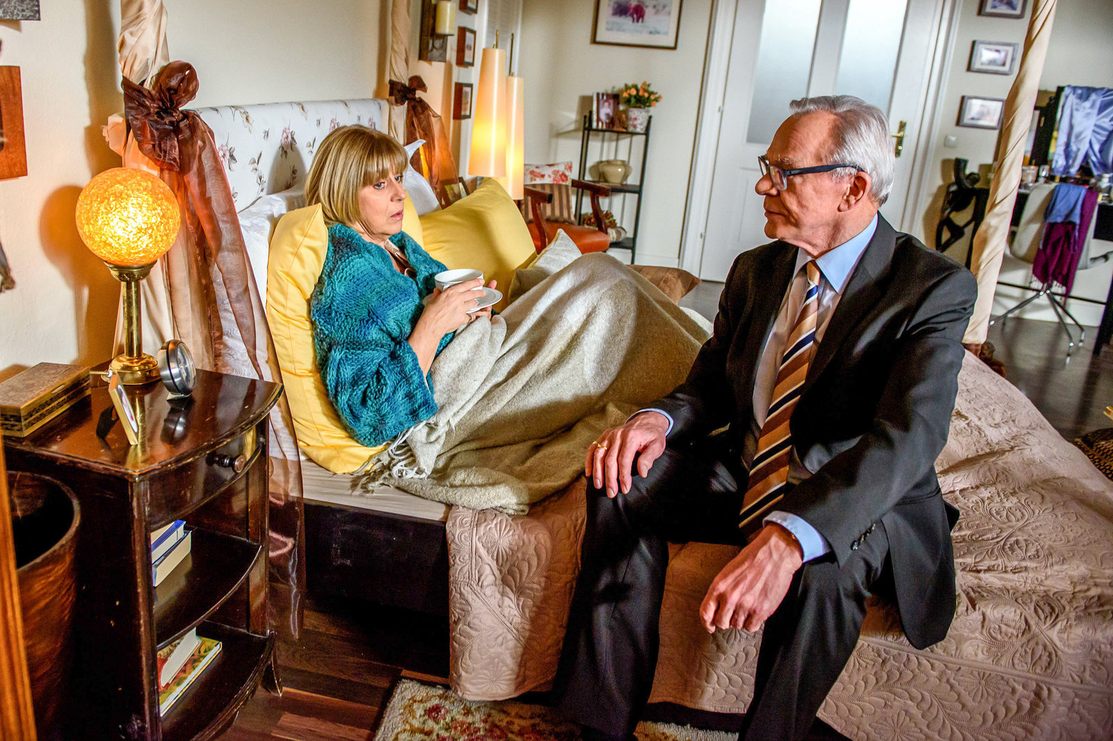 GefangenCharlotte (Mona Seefried, l.) gibt vor Werner (Dirk Galuba, r.) zu, dass sie die Nähe zu Friedrich nicht kalt gelassen hat.Bild: © ORF