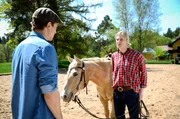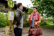 Ein Stalker?Goran (Saša Kekez, l.) hält Romys Cousin Tobias (Max Beier, r.) fälschlicherweise für einen Stalker. Naturverbunden, konservativ, abenteuerlustig, so kommt Romys Cousin Tobias, gespielt von Max Beier, an den „Fürstenhof“.Bild: © ARD/Christof Arnold