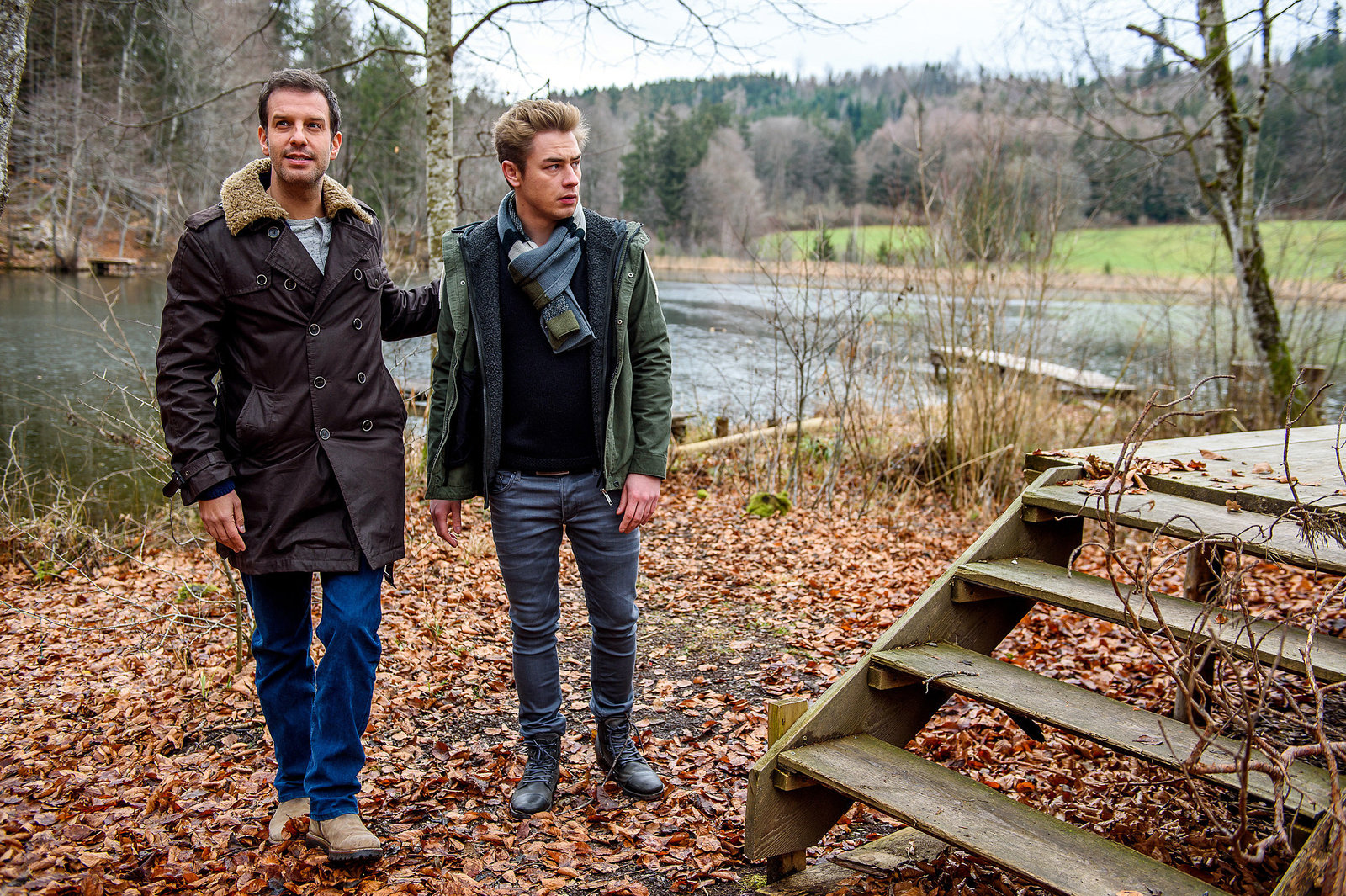 In die Falle getapptAdrian (Max Alberti, r.) begleitet Oskar (Philip Butz, l.) in die Berge und versucht ihn von seinem Liebeskummer abzulenken.Bild: © ORF