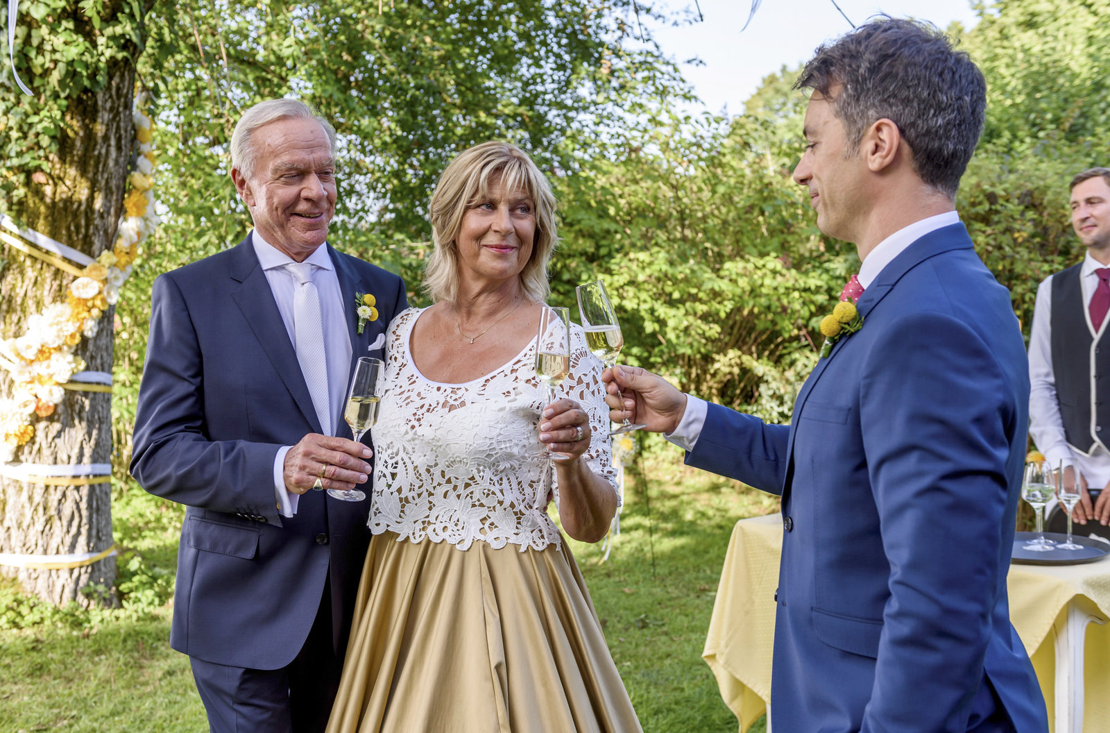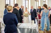 Claras und Adrians HochzeitHochzeit: Alfons (Sepp Schauer, M.r.) begleitet seine Enkelin Clara (Jeannine Wacker, M.l.) zum Altar.Bild: © ARD/Christof Arnold