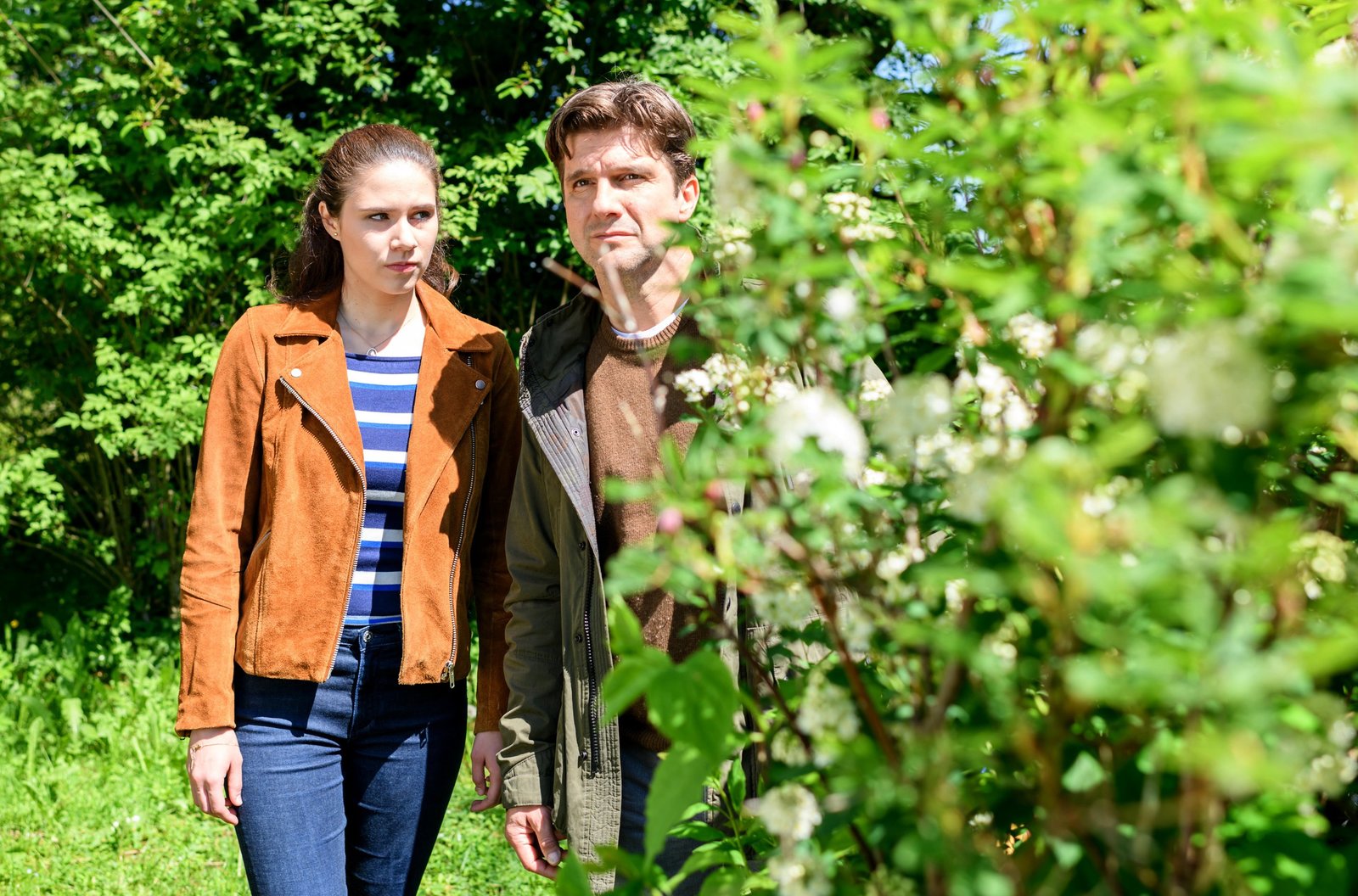 KindheitsträumeDenise (Helen Barke, l.) wundert sich über Elmars (Jens Nünemann, r.) Verhalten als der Christoph sieht.Bild: © ARD/Christof Arnold