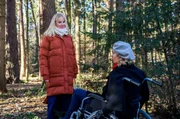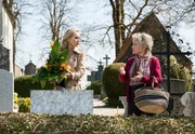 Wer ist Beatrice?Hildegard (Anje Hagen, re.) spricht die mysteriöse Fremde (Isabella Hübner) an, als diese Blumen von einem Grab stiehlt.Bild: © ORF