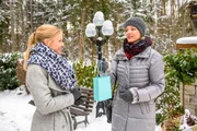 Schlechtes OmenLuisa (Magdalena Steinlein, l.) gibt Natascha (Melanie Wiegmann, r.) ein Geschenk für Poppy mit.Bild: © ORF