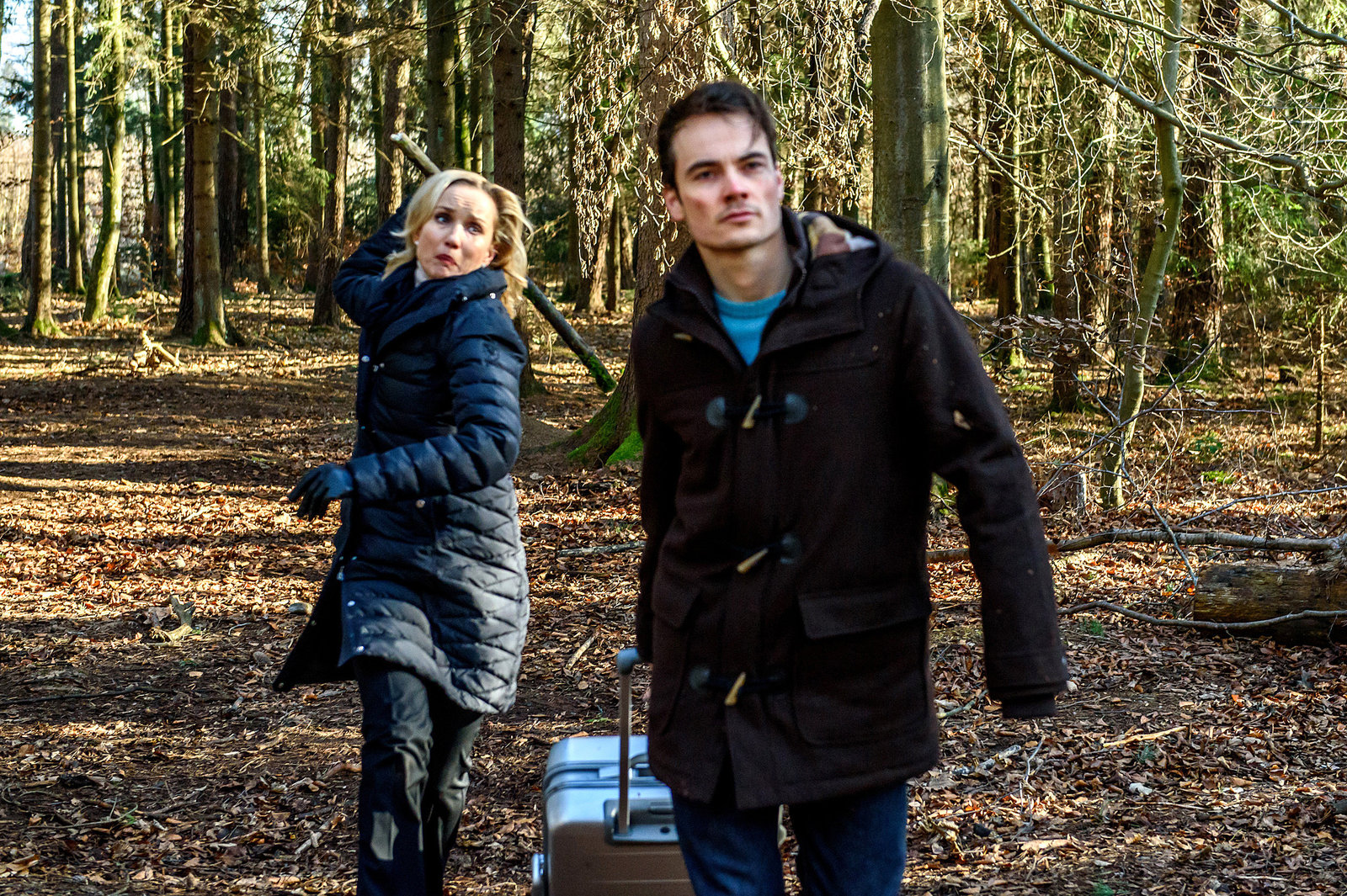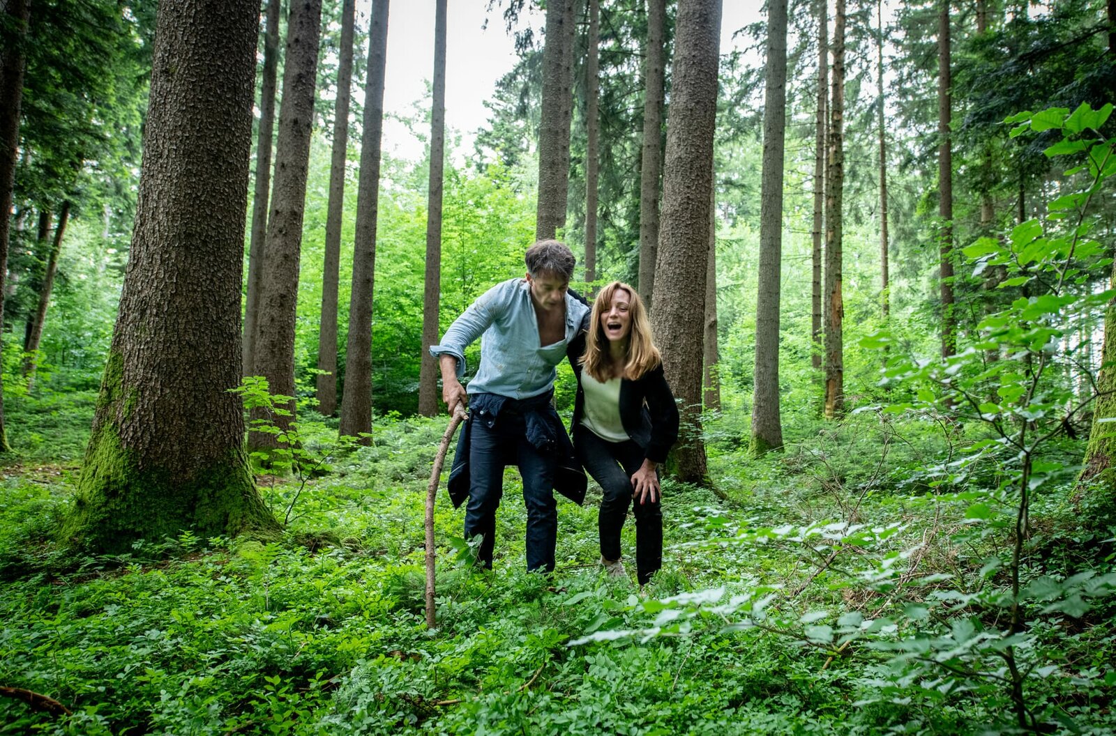 Im Kreis gelaufenAriane (Viola Wedekind, r.) verletzt sich am Knöchel, aber versucht, vor Robert (Lorenzo Patané, l.) keine Schwäche zu zeigen.Bild: © ARD/Christof Arnold