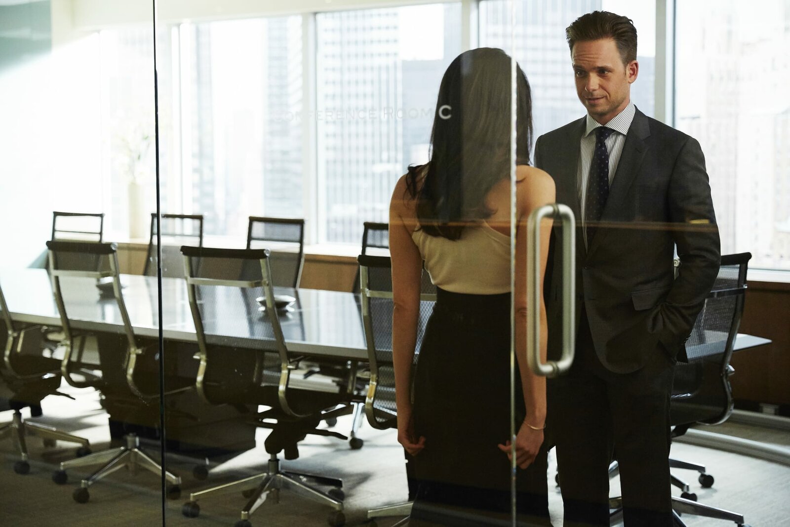 TiefschlagL-R: Rachel Zane (Meghan Markle) und Mike (Patrick J. Adams)Bild: © Universal TV