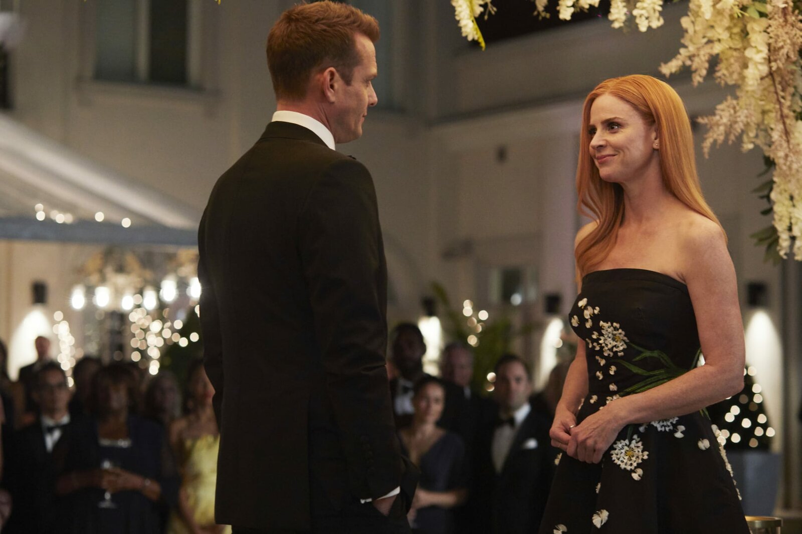 Ein letzter TrickSUITS -- "One Last Con" Episode 910 -- Pictured: (l-r) Gabriel Macht as Harvey Specter, Sarah Rafferty as Donna Paulsen -- (Photo by: Shane Mahood/USA Network)Bild: © UTV / 2019 Open 4 Business Productions, LLC/USA Network/USA Network