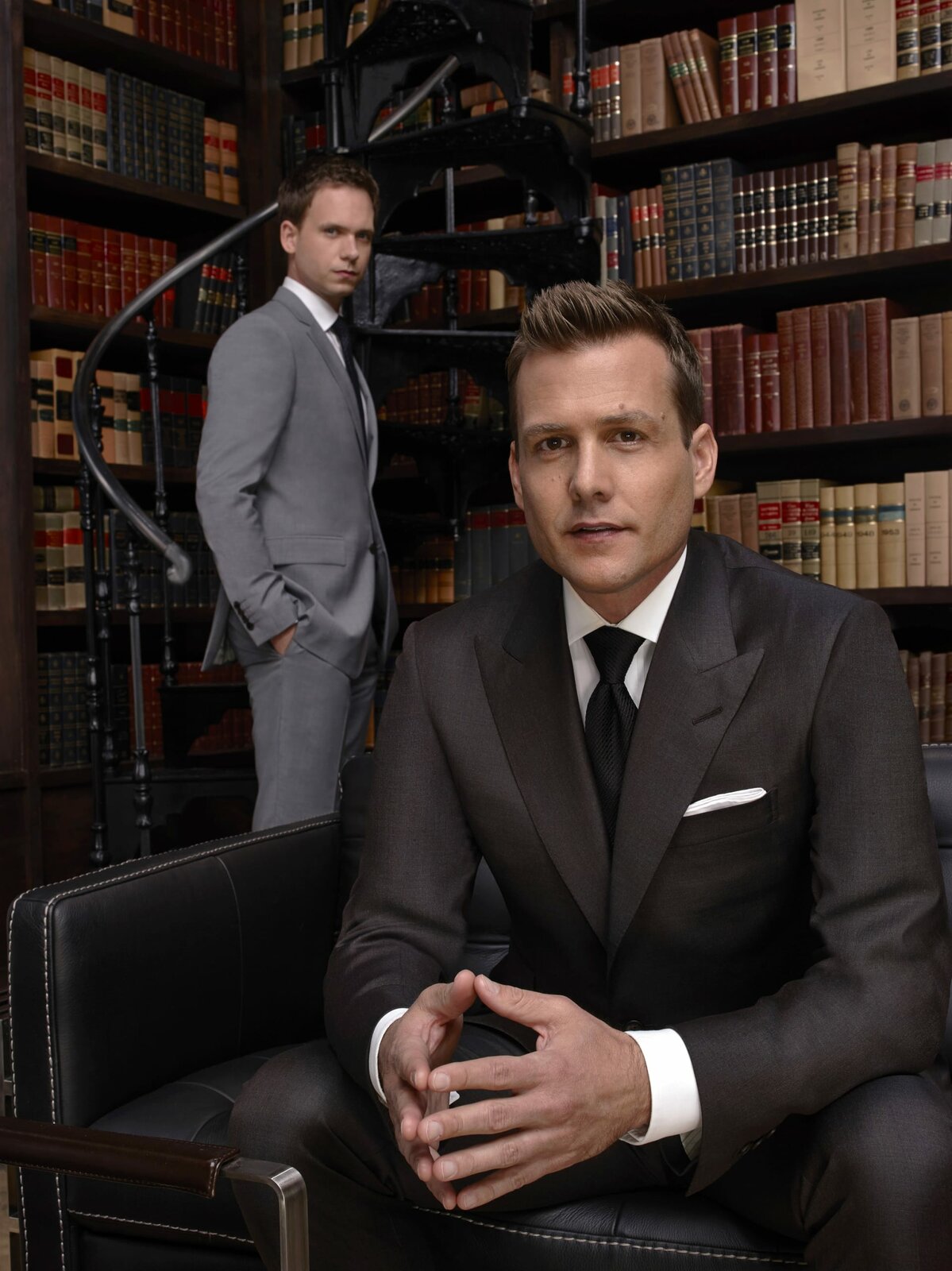 SelbstverteidigungSUITS -- "Uninvited Guests" Episode 509 -- Pictured: (l-r) Rick Hoffman as Louis Litt, Gabriel Macht as Harvey Specter -- (Photo by: Shane Mahood/USA Network)Bild: © USA Network / 2015 USA Network Media, LLC.
