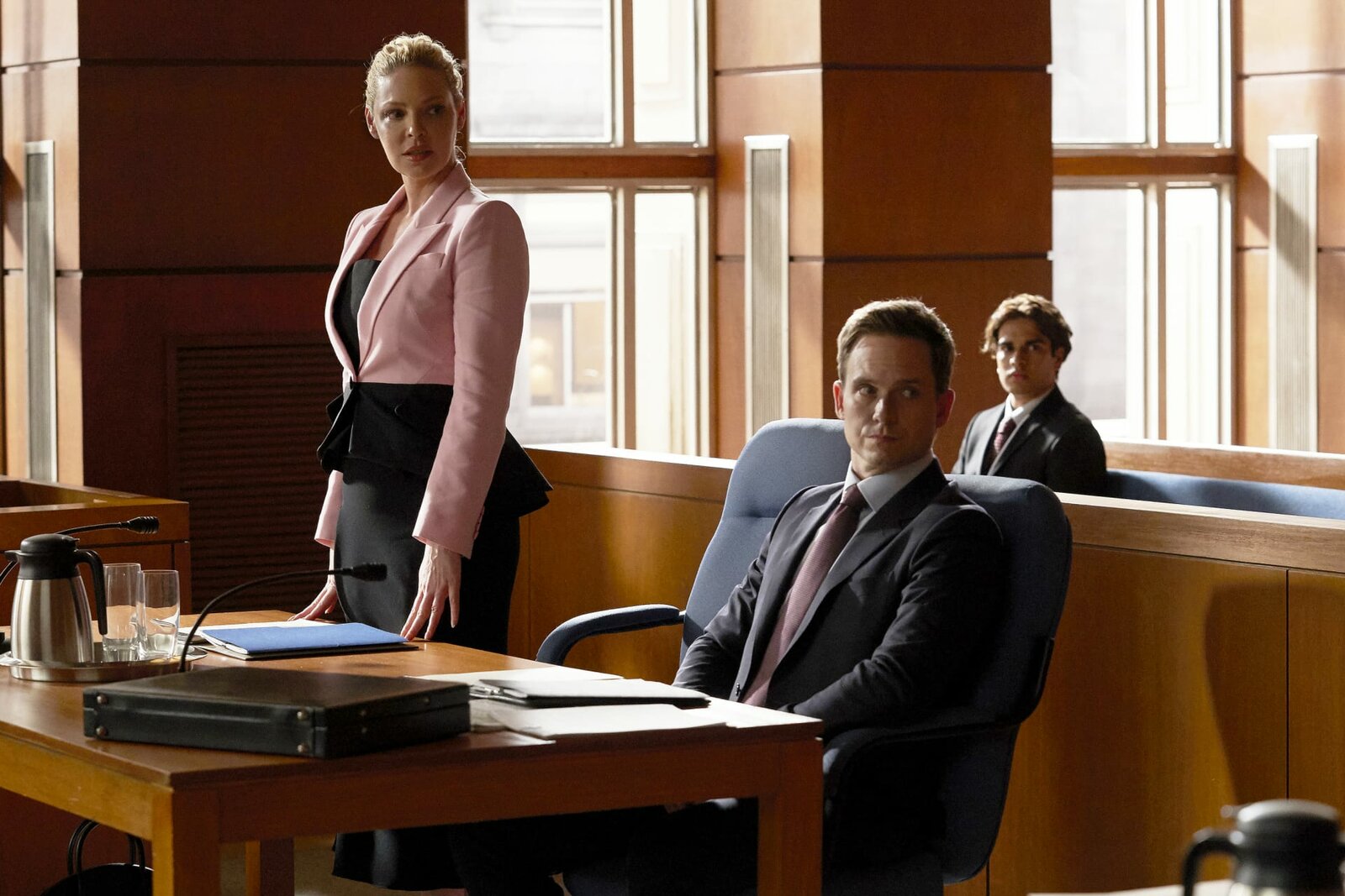 Zur Brust nehmenPictured: (l-r) Pictured: Samantha Wheeler (Katherine Heigl), Mike Ross (Patrick J. Adams)Bild: © UTV / 2019 Open 4 Business Productions, LLC/USA Network/USA Network