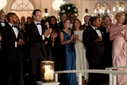 Ein letzter TrickSUITS -- "One Last Con" Episode 910 -- Pictured: (l-r) Rick Hoffman as Louis Litt, Aloma Wright as Gretchen Bodinski, Patrick J. Adams as Mike Ross, Sarah Rafferty as Donna Paulsen -- (Photo by: Shane Mahood/USA Network)Bild: © UTV / 2019 Open 4 Business Productions, LLC/USA Network/USA Network