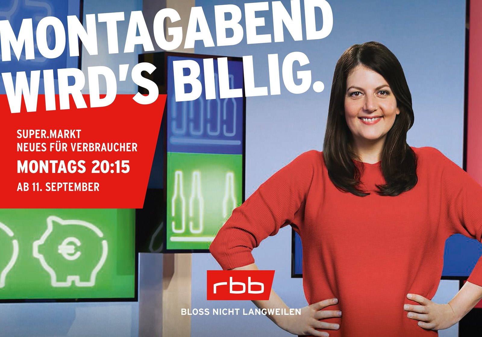 Folge 180RUNDFUNK BERLIN-BRANDENBURG Neues Fernsehprogramm für den rbb startet Nach der Sommerpause eröffnet Janna Falkenstein (Foto) am Montag den 11. September zum Wochenstart die Fernseh-Primetime beim rbb mit dem Verbrauchermagazin "SUPER.MARKT". Live aus Potsdam geht sie wieder auf informative Streifzüge durch die bunte Waren- und Wirtschaftswelt, immer entlang der Frage: "Na, heute schon verbraucht?". © rbb, honorarfrei - Verwendung gemäß der AGB im Rahmen einer engen, unternehmensbezogenen Berichterstattung im rbb-Zusammenhang bei Nennung "Bild: rbb" (S2+), rbb Presse & Information, Masurenallee 8-14, 14057 Berlin, Tel: 030/97 99 3-12118 oder -12116, pressefoto@rbb-online.deBild: © rbb / rbb Presse & Information