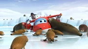 Eine ganz besondere Lieferung (1)Jett ist in einen Schneesturm geraten und abgestürzt. Können ihm die Robben und Pinguine aus dem Eis heraushelfen?Bild: © SUPER RTL