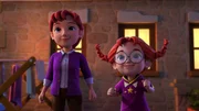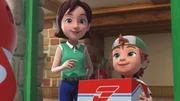 Dinos im RegenJett liefert ein Paket nach Rumänien zu der kleinen Julia, dessen Großvater einen Vergnügungspark besitzt, indem es riesige Bausteinosaurier gibt.Bild: © SUPER RTL