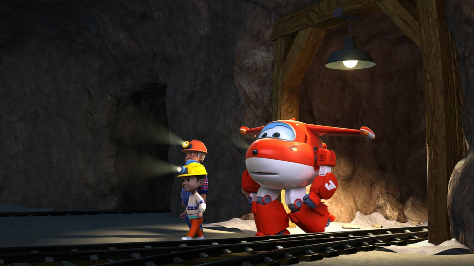 Rasante Fahrt im DunkelnAngelo hat sich einen Grubenhelm bestellt. Jetzt kann er seinen Hund in der alten Mine suchen.Bild: © KiKA/FunnyFlux/QianQi/EBS/CJ E&M