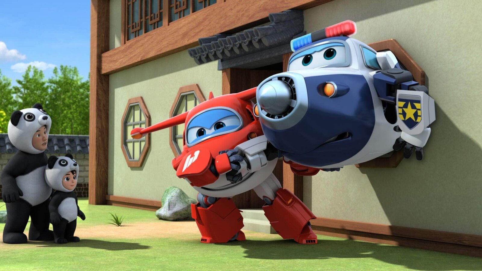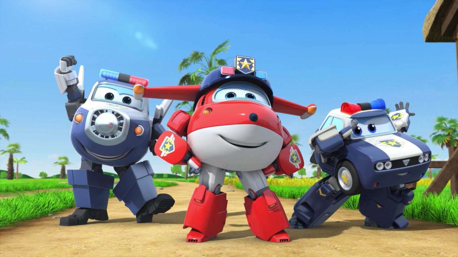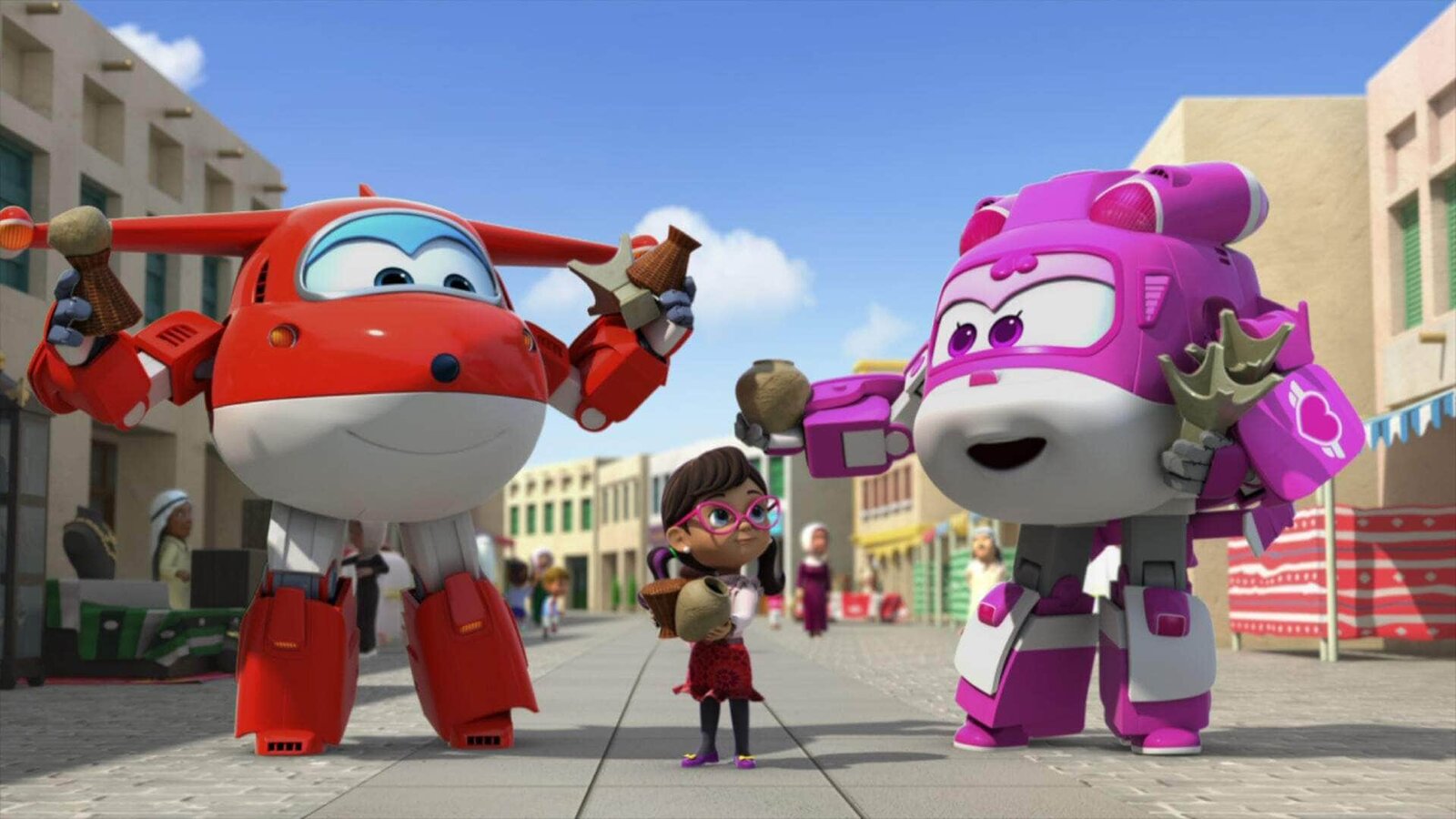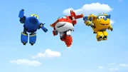 Verschwundenes SpielzeugDie drei Super Wings verabschieden sich.Bild: © KiKA/FunnyFlux/QianQi/EBS/CJ E&M