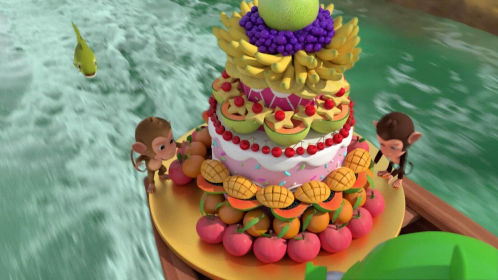 Ein Zug voller BallonsPaul kann nicht verhindern, dass ein paar kleine Affen im Zug die sich selbst aufblasenden Ballons auslösen. Schon bald ist der ganze Zug voll mit den Selbstfliegern und hebt ab.Bild: © 2021 FUNNYFLUX / ALPHA ALL RIGHTS RESERVED