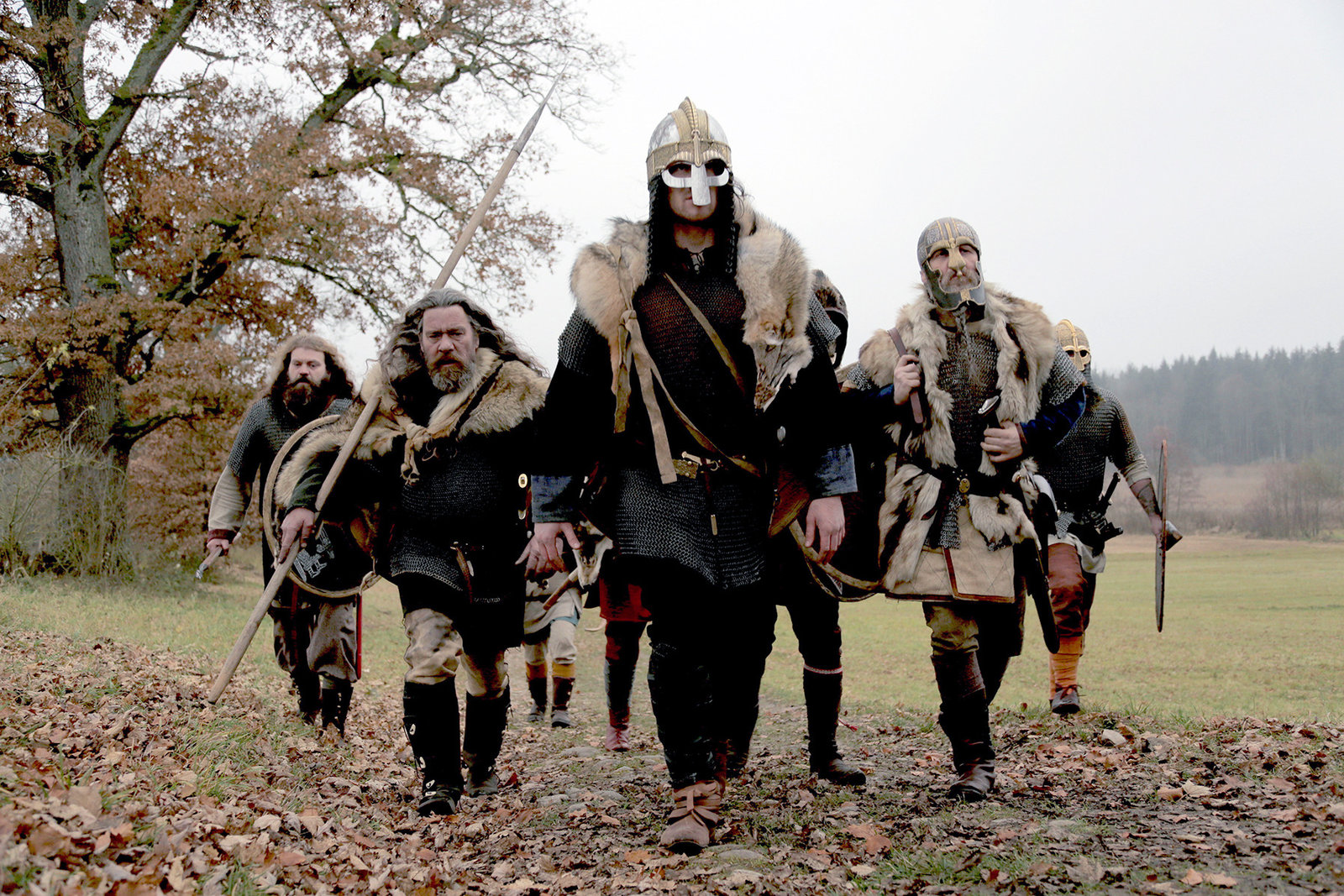 BeowulfDer gautische Krieger Beowulf (dargestellt von Artjom Gilz, Mi.) und seine Männer kommen dem dänischen König Hrothgar zu Hilfe.Bild: © ZDF / © Manuel Stallroth