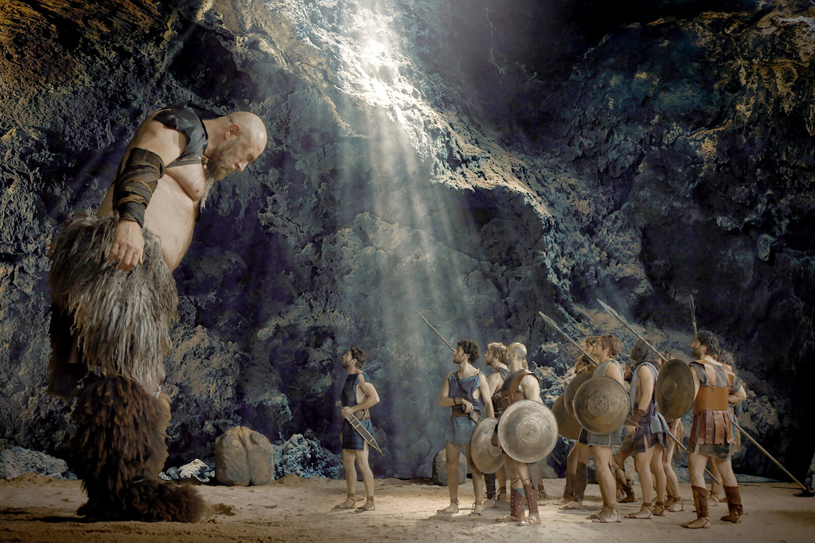 OdysseusOdysseus (Stephan Käfer) und seine Männer begegnen dem einäugigen Riesen Polyphem.Bild: © arte