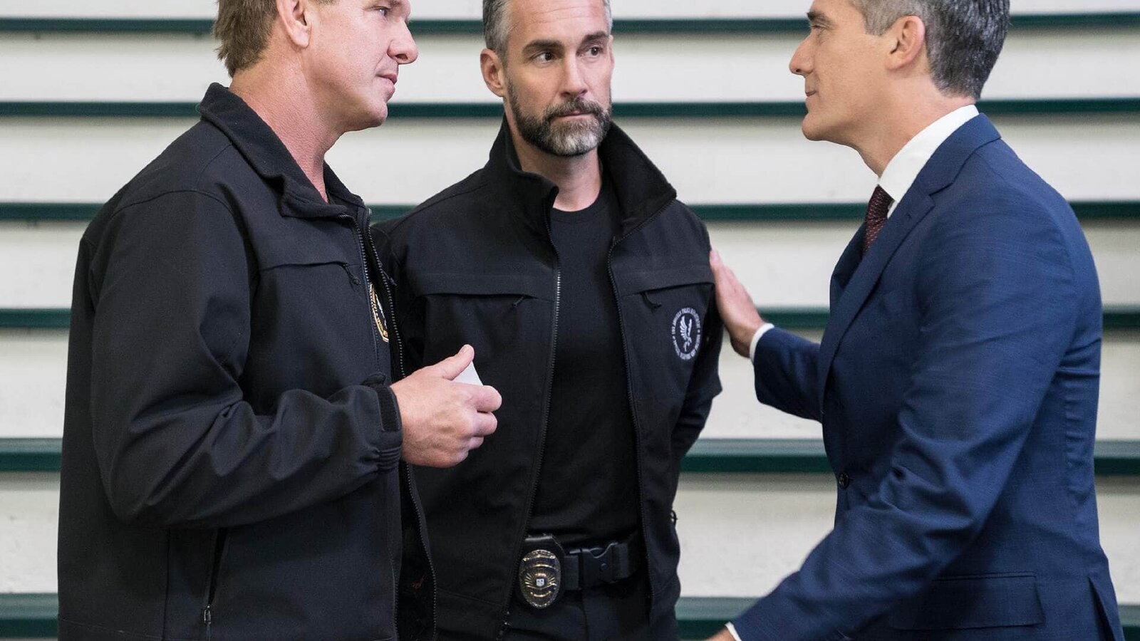 GedemütigtV.l.: Dominique Luca (Kenny Johnson), David "Deacon" Kay (Jay Harrington) und Brian Mobley (Eric Garcetti)Bild: © TVNOW / © 2018 Sony Pictures Television Inc