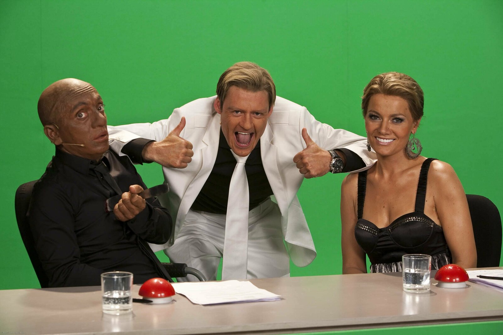 (5. Staffel) - Das Supertalent: Bruce Darnell (Bernhard Hoecker, l.), Dieter Bohlen (Max Giermann, M.) und Sylvie van der Vaart (Martina Hill, r.) ...Bild: © ProSieben / Kai Schulz Eigenproduktionsbild frei