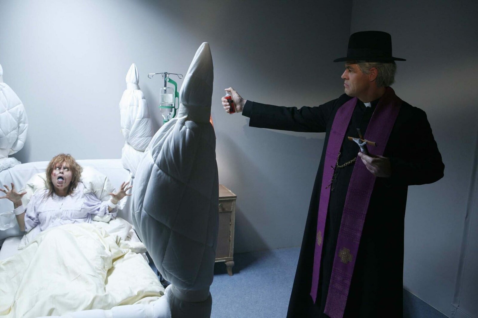 Der Pater (Michael Müller, r.) will die Besessene (Mona Sharma, l.) erlösen ...Bild: © ProSieben Eigenproduktionsbild frei