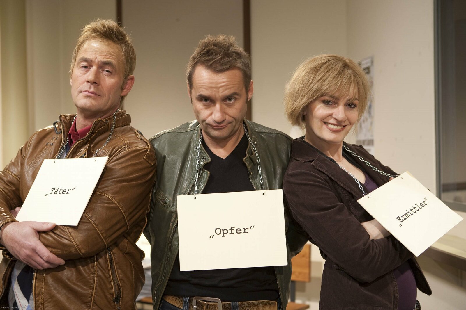 (4. Staffel) - Niedrig & Kuhnt: Bernie Kuhnt (Michael Müller, l.), Bernie Kuhnt (Bernhard Kuhnt, M.) und Conny Niedrig (Martina Hill, r.)Bild: © ProSieben / Kai Schulz Eigenproduktionsbild frei