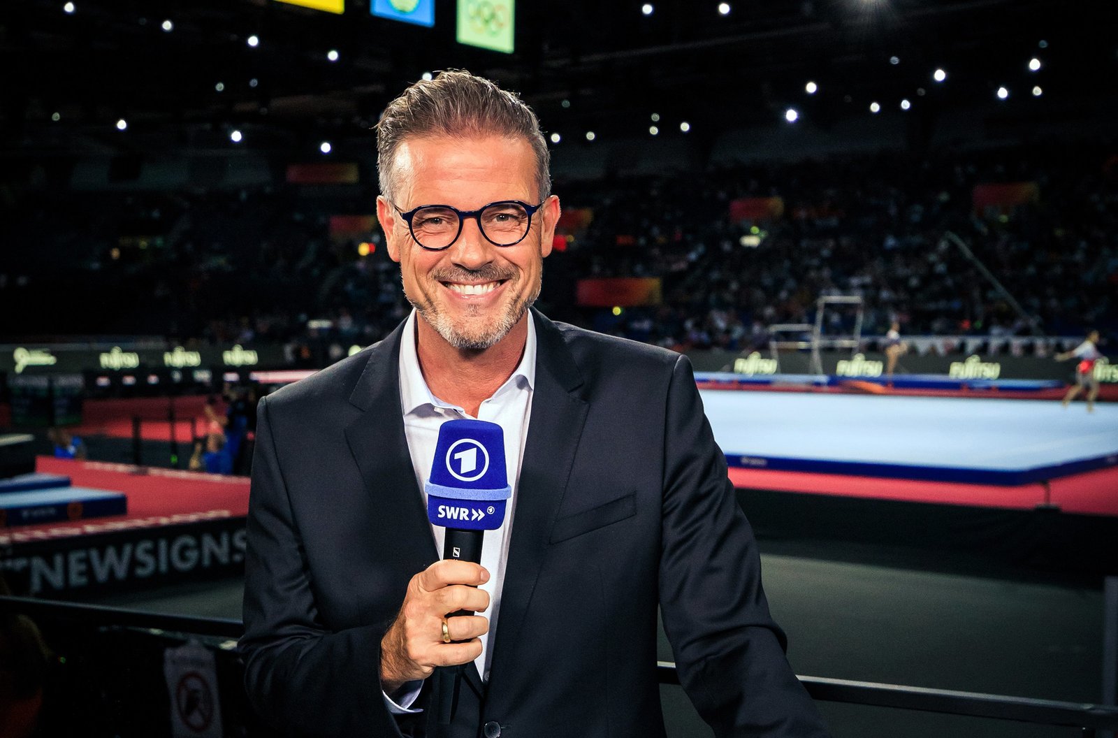 SÜDWESTRUNDFUNK SWR Sport - Die Turn-WM wird durch umfangreiche Berichterstattung im Ersten, im SWR Fernsehen sowie bei Sportschau.de und unter SWR.de/sport begleitet. Moderator Michael Antwerpes bei der Turn-Weltmeisterschaft 2019 in Stuttgart. © SWR/Yannick Bodemer Fotografie, honorarfrei - Verwendung gemäß der AGB im engen inhaltlichen, redaktionellen Zusammenhang mit genannter SWR-Sendung bei Nennung "Bild: SWR/Yannick Bodemer Fotografie" (S2+). SWR Presse/Bildkommunikation, Baden-Baden, Tel: 07221/929-222202, foto@swr.deBild: © SWR/Yannick Bodemer Fotografie / SWR Presse/Bildkommunikation