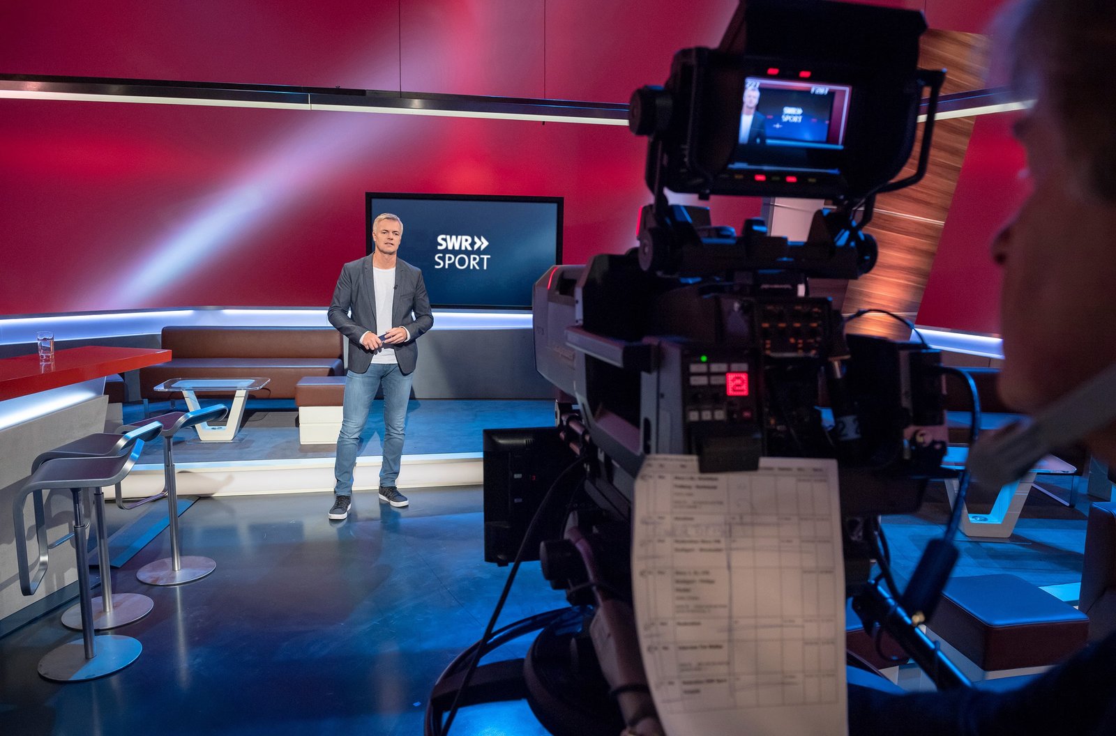 S√úDWESTRUNDFUNK SWR Sport Im Fernsehstudio A im SWR Funkhaus Stuttgart werden die Sendungen ‚ÄûSWR Sport‚Äú, Sa.,17:30 Uhr im SWR Fernsehen und ‚ÄûSWR Sport‚Äú, So., 21:45 Uhr im SWR Fernsehen Baden-W√ºrttemberg sowie oftmals die Sondersendungen von SWR Sport im SWR Fernsehen live produziert. ‚ÄûSWR Sport‚Äú samstags und die Sondersendungen im leeren Studio. ‚ÄûSWR Sport‚Äú sonntagsabends mit Zuschauern im Studio. Kamera im SWR Sport-Studio. ¬© SWR/Alexander Kluge, honorarfrei - Verwendung gem√§√ü der AGB im engen inhaltlichen, redaktionellen Zusammenhang mit genannter SWR-Sendung und bei Nennung "Bild: SWR/Alexander Kluge" (S2). SWR-Presse/Bildkommunikation, Baden-Baden, Tel: 07221/929-22287, foto@swr.deBild: © SWR / SWR-Presse/Bildkommunikation