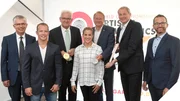 Bei der Medaillen-Präsentation: V. li.: Dr. Peter Huber (Münzleiter Staatliche Münzen Baden-Württemberg), Fabian Hambüchen (Turn-WM Botschafter), Winfried Kretschmann (Ministerpräsident), Elisabeth Seitz (Turn-Team Deutschland), Wolfgang Drexler (STB Präsident), Bernd Kussmaul (Geschäftsführer Manufaktur Kussmaul), Jörg Hoppenkamps (Geschäftstführer Turn-WM)Bild: © SWR/homepage stuttgart 2019/KD Busch