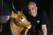 Tutanchamuns SchätzeEgypt - Eissa Zidane with Tutankhamun's Hathor statue.Bild: © Windfall Films