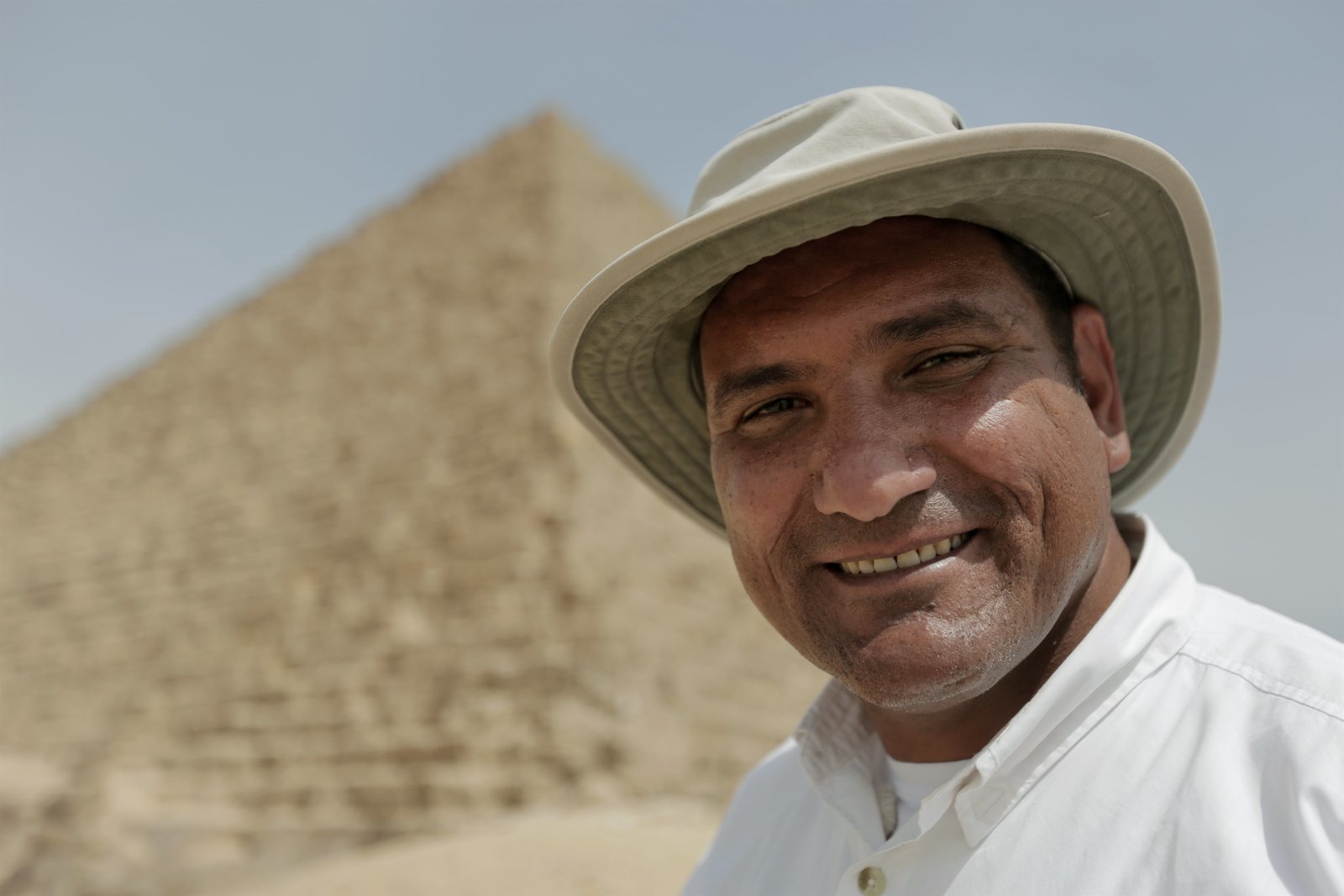 Suche nach der verschollenen GrabkammerCairo, Egypt - Ashraf in front of Menkaure's pyramid. (Windfall Films)Bild: © Copyright © The National Geographic Channel.