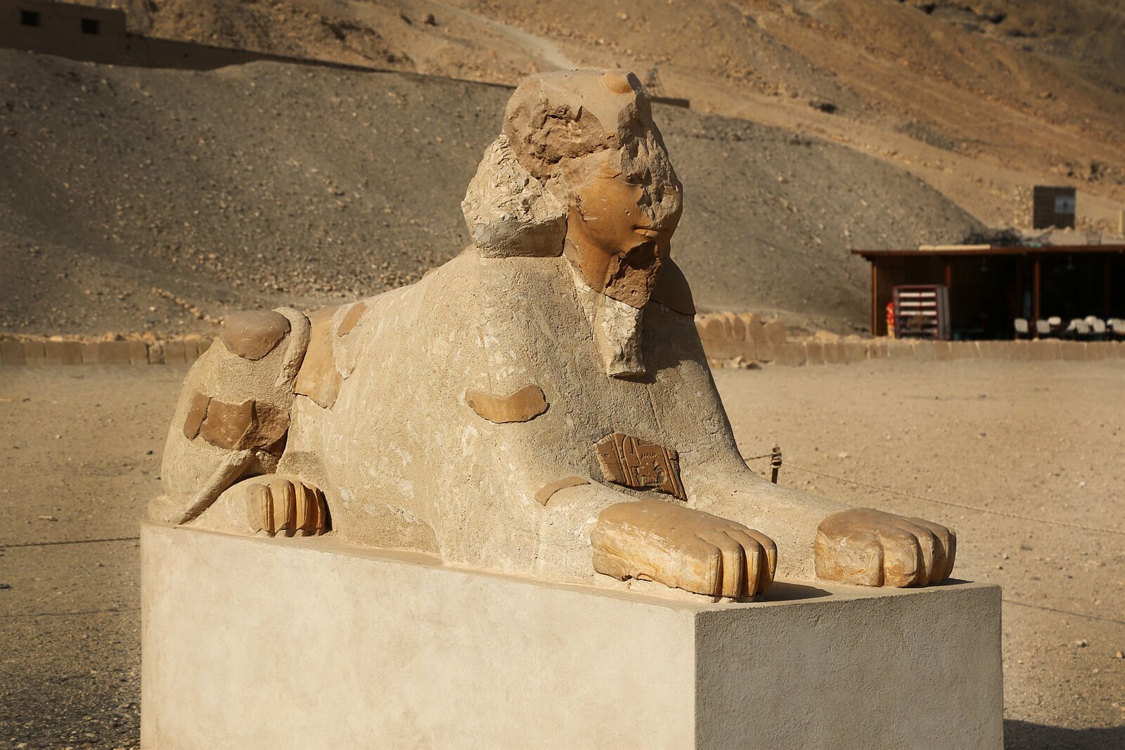 KriegerköniginDeir el-Bahri, Egypt - Sphinx outside Hatshepsut's Mortuary Temple.Bild: © Windfall Films