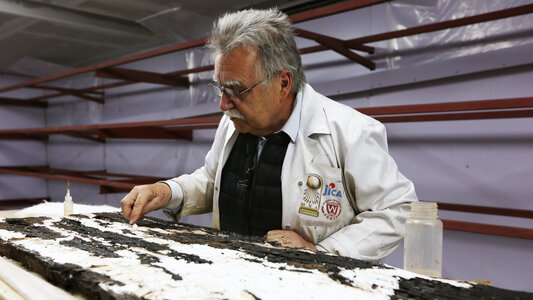 GrabräuberDeir el-Bahri, Ägypten - Antonio Morales hält eine mumifizierte Leiche. (Windfall Films)Bild: © Copyright © The National Geographic Channel.